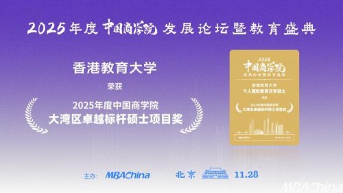 11月28日,由MBAChina与《经理人》杂志联合主办的“2025年度中国商学院发展论坛暨教育盛典”在北京启幕。荣获“2025年度大湾区卓越标杆硕士项目奖”的香港教育大学个人理财教育文学硕士课程,正是这样一项具有前瞻性、示范性的杰出代表。