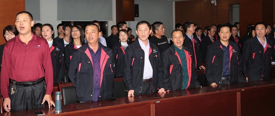 江西瑞金金字电线电缆有限公司党团员和职工全体起立合唱《东方红》