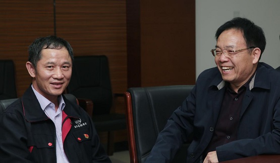 电影《红色往事》总制片人王湧强与瑞金金字电线电缆公司职工亲切交谈
