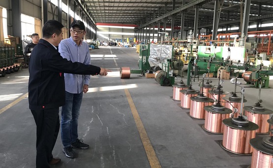 电影《红色往事》在观影前,江西瑞金金字电线电缆有限公司董事长黄宗汉陪同电影《红色往事》总制片人、山西久盛影视有限公司董事长王湧强先生和电影《红色往事》重走长征路公益放映万里行总指挥赵志杰、副总指挥孙蒲、王海泽等一行参观了厂区车间。